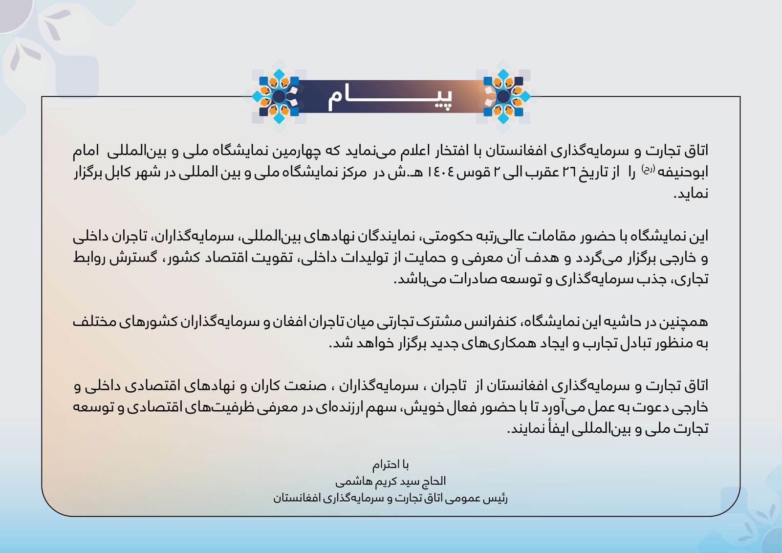 به مناسبت چهارمین نمایشگاه ملی و بینالمللی امام ابو حنیفه (رح)
