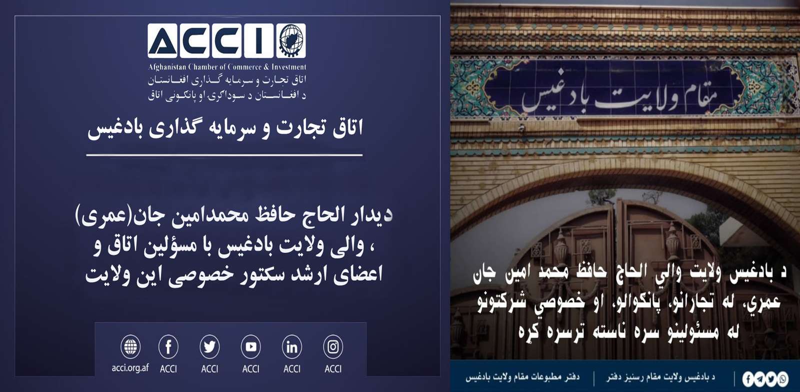 این دیدار امروز چهارشنبه تحت ریاست محترم الحاج ملا باریگل آخند، معاون والی ارزگان، و با حضور الحاج حبیبالله "عمر" رئیس اتاق تجارت ارزگان، الحاج ملا عبدالله صاحب و ملا فضليالله "بلال" رئیس مالی و اداری اتاق، با رئیس اجرایی شرکت ملی انکشاف محترم عبدالرحمن "عطاش" پیرامون پروژه بند آغاجان و چندین پروژه مهم توسعهای دیگر برگزار گردید.